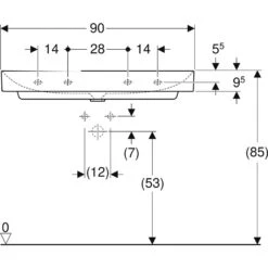 Geberit ONE Möbelwaschtisch 90 Cm, Abgang Horizontal, 1 Hahnloch, Ohne Überlauf, Ablage Rechts