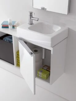 Burgbad Iveo Waschtischkombination Mit Mineralguss-Waschtisch Und LED-Beleuchtung 44 Cm Rechts