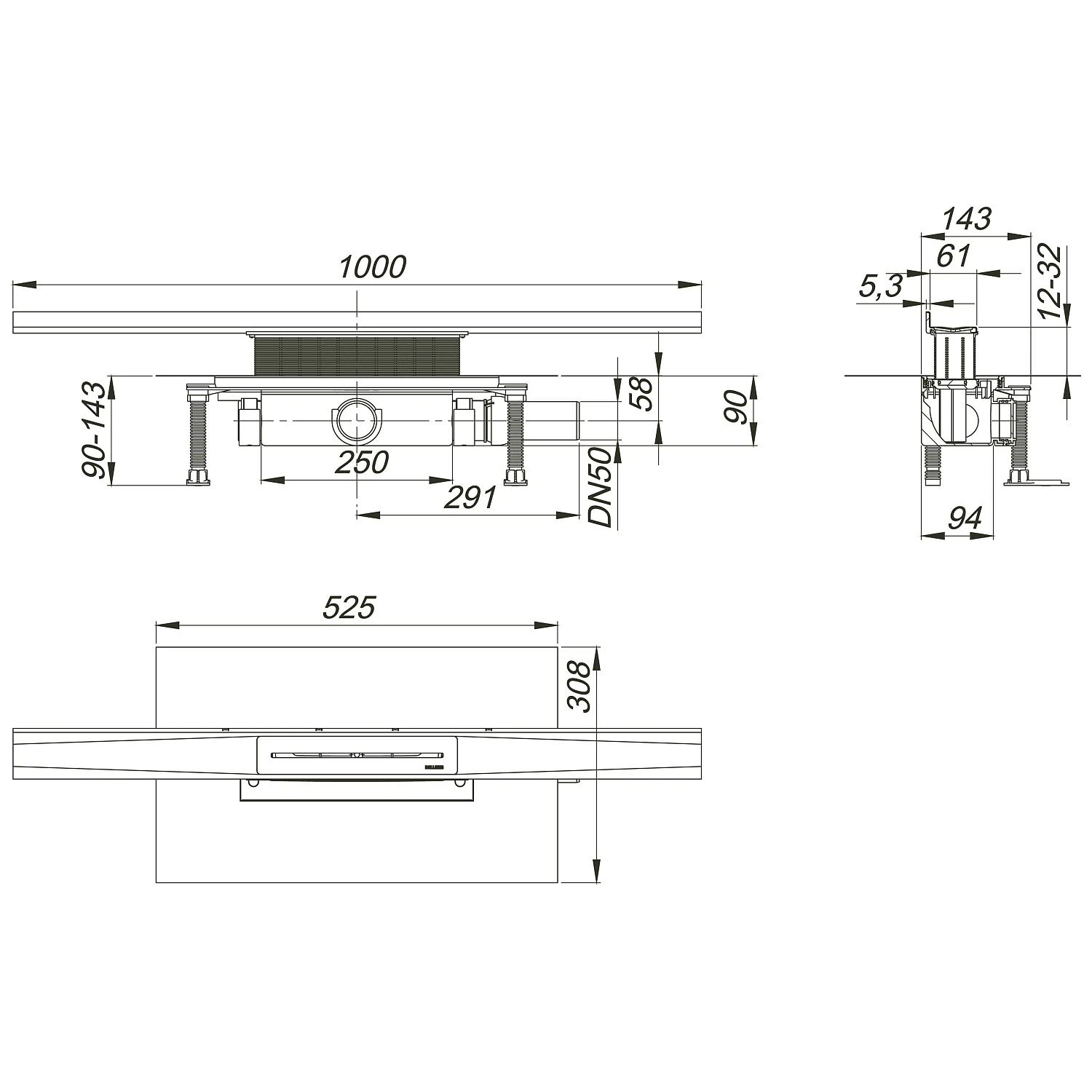 - Sperrwasserhöhe 5 cm (abweichend von DIN EN 1253)