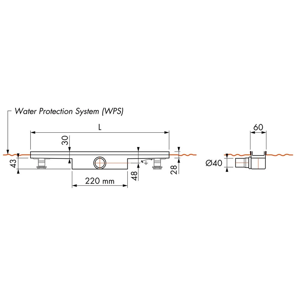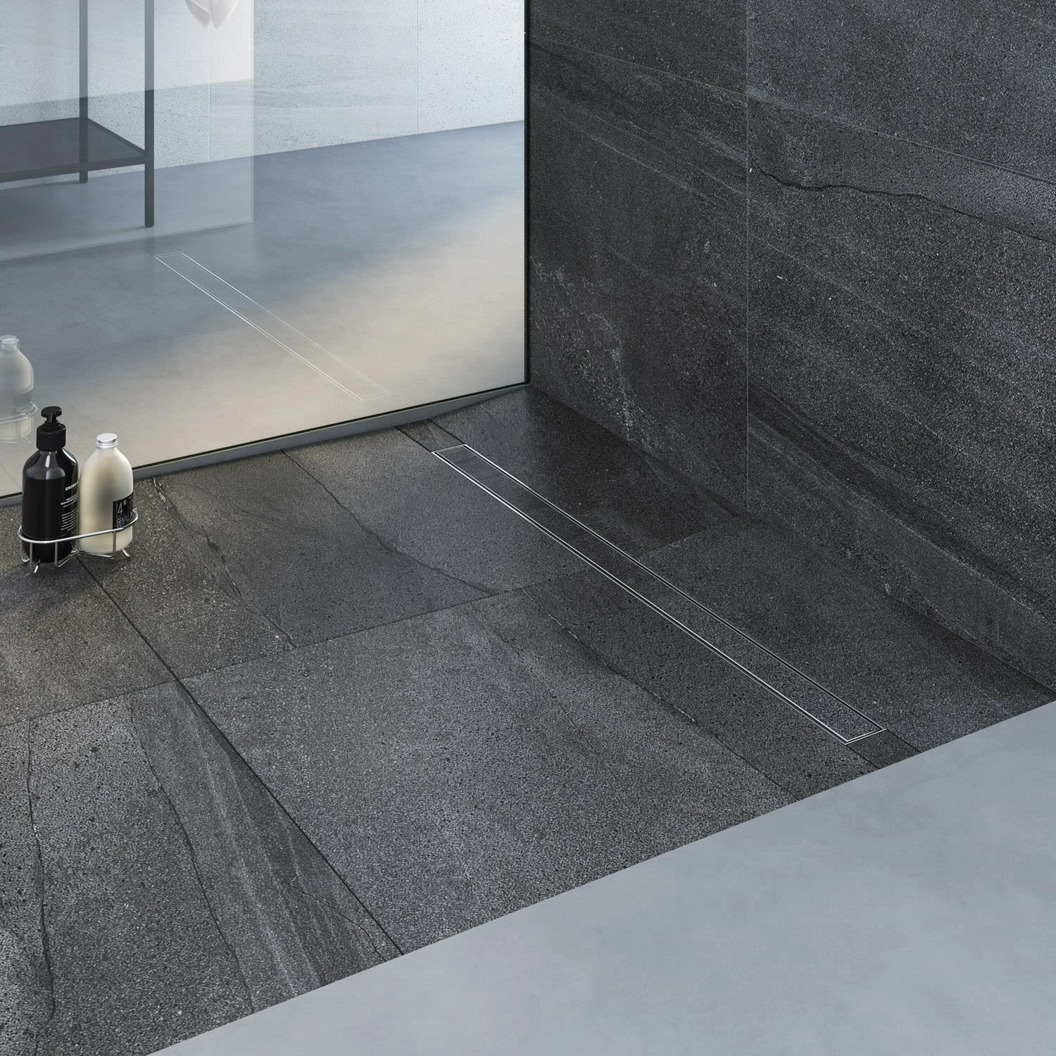 Drainset komplett, superflache Duschrinne Compact 120 cm mit Abdeckung für Fliese