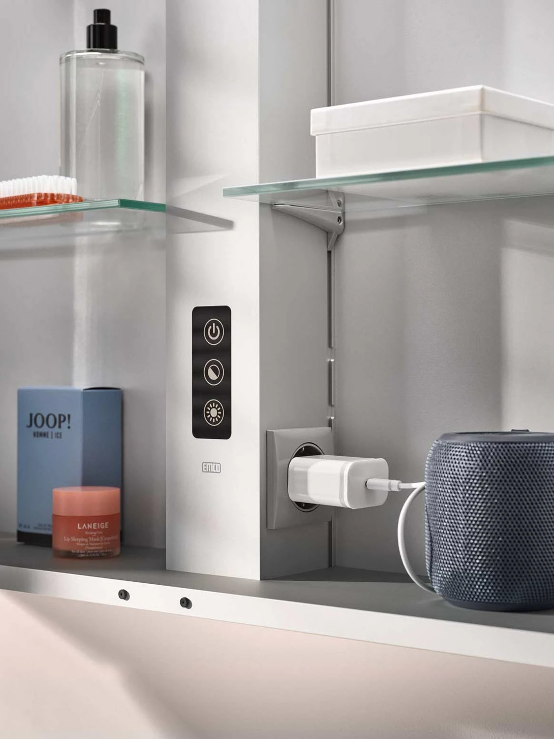 Emco pure 2 Design LED-Lichtspiegelschrank 80 cm, mit Lichtsegel, 2 Türen