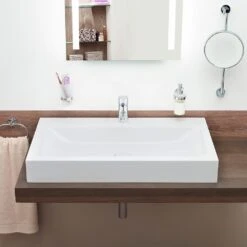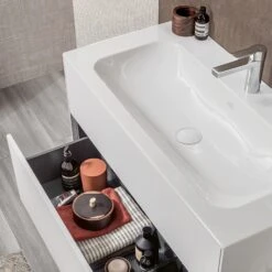 Geberit ONE Waschtisch 90 cm, Abgang vertikal, 1 Hahnloch, ohne Überlauf