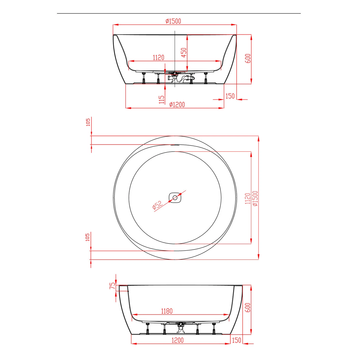 Hoesch iSensi Rundbadewanne 150 cm, freistehend