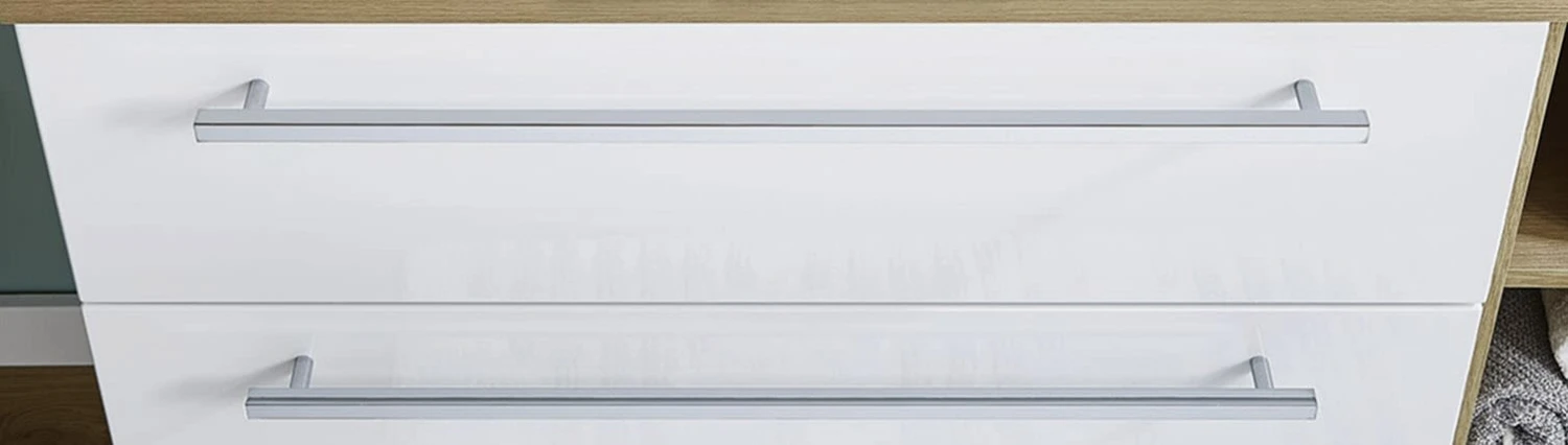 Die Farboberflächen der Front sind in der Reihenfolge Auszug,Schubkasten/Dekorplatte angegeben.