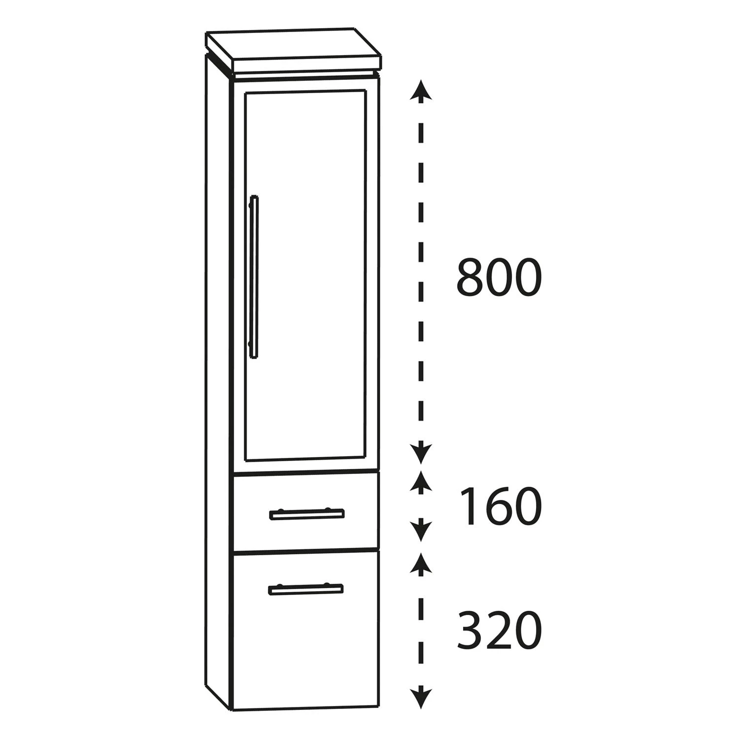 Puris Cool Line Mittelschrank 30 x 30 x 132 cm mit 1 Auszug, 1 Schubkasten und 1 Alu Rahmentür, Anschlag rechts, Griff 289