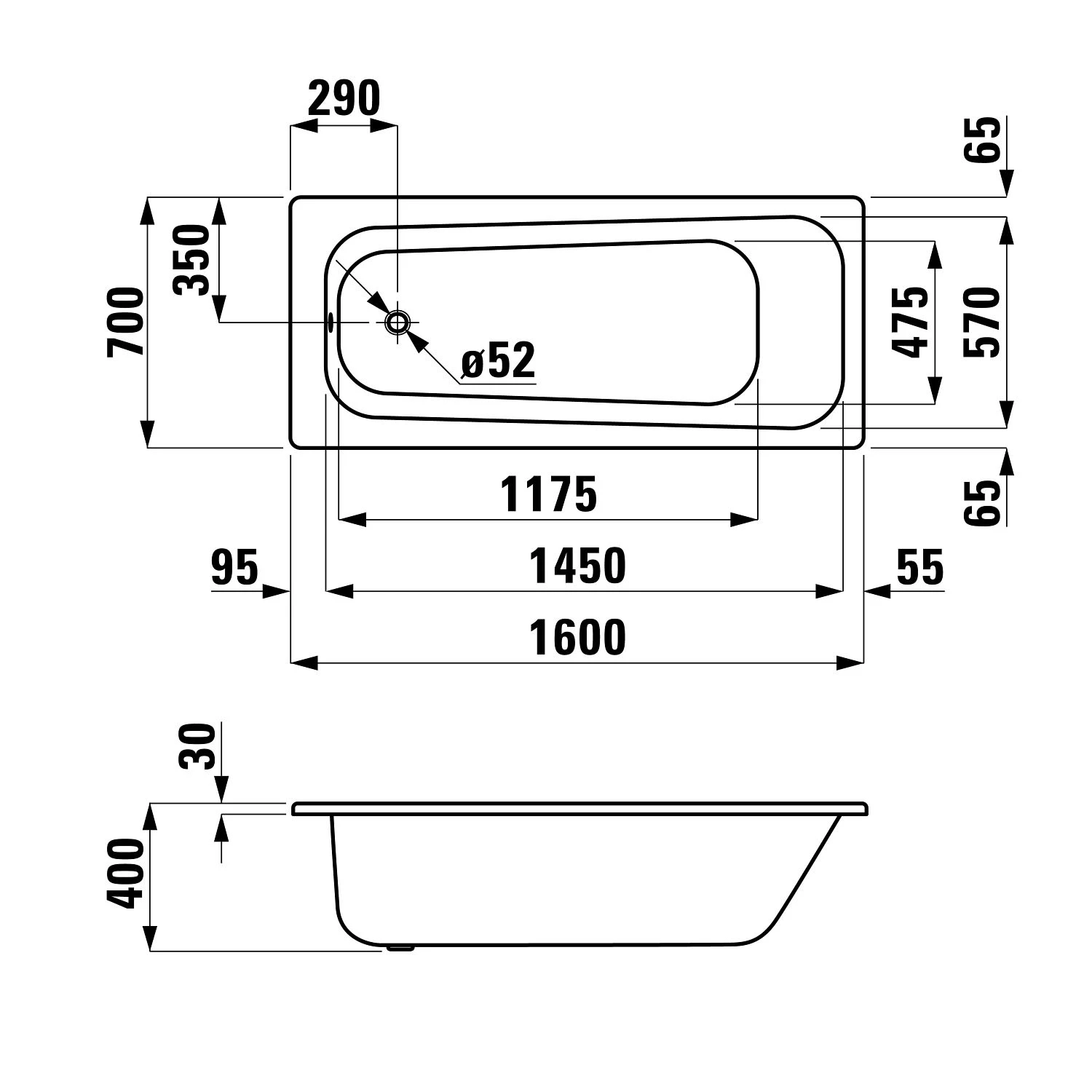 Steel Körperform-Einbaubadewanne 160 x 70 cm