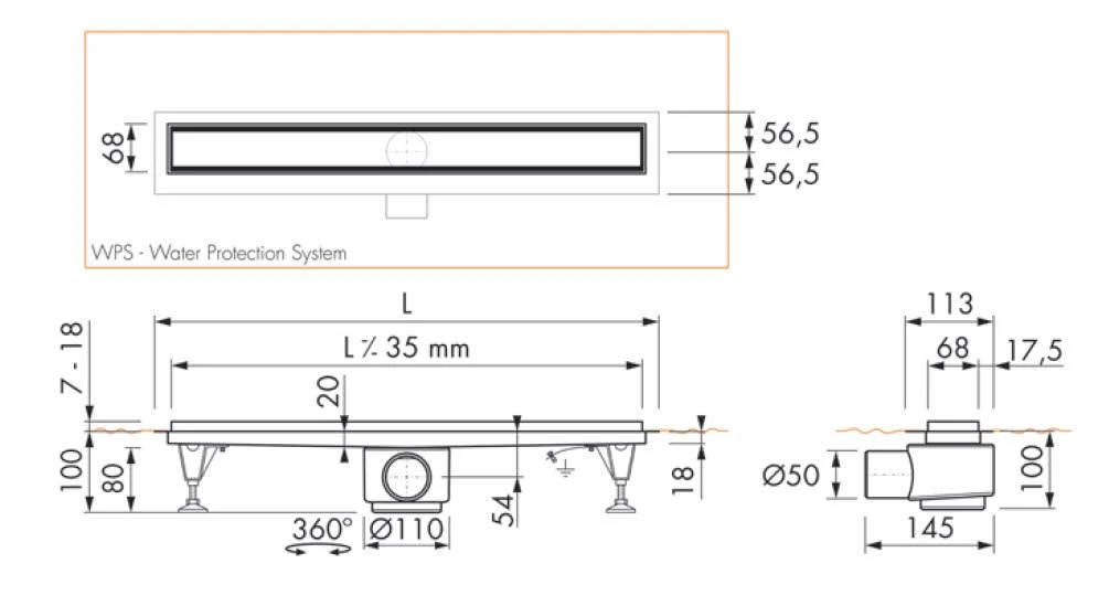 - drehbare und höhenverstellbare Designabdeckung, wählbar zwischen Edelstahl gebürstet oder befliesbar